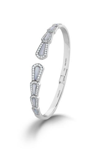 The House’s heritage is showcased in a pair of Muse Starlight earrings, which pay homage to Queen Alexandra, one of Garrard’s most dazzling royal patrons, and her beloved star jewels, while several Regal Cascade jewels also reference Garrard’s storied royal history. A celebration of one of its finest achievements, the setting of the Great Star of Africa – the most impressive stone cut from the great Cullinan Diamond – atop the Sovereign’s Sceptre in 1910, Garrard revisits the iconic scroll setting anew in timeless jewels that entrance with aquamarines and sapphires, and beautiful mother-of-pearl accents.
